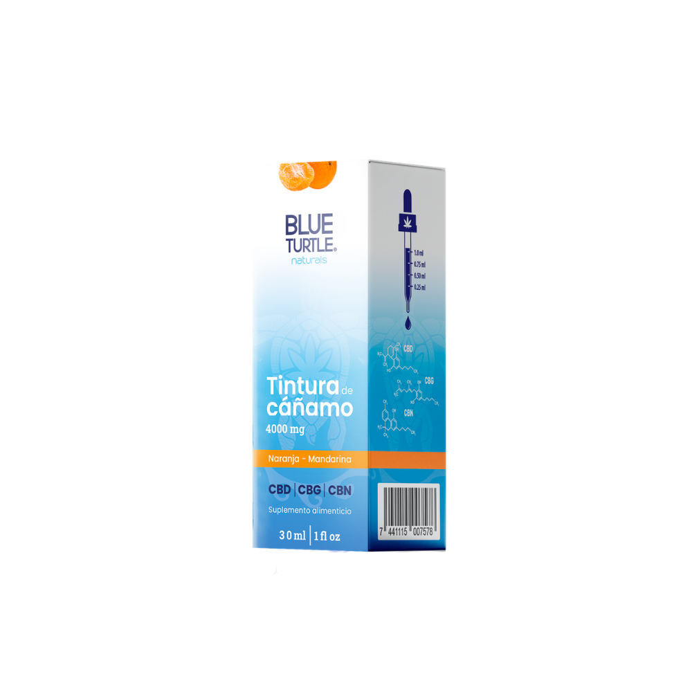 Tintura de Cáñamo de 4000 mg (30mL) en Naranja Mandarina de Blue Turtle Naturals. Nuestras tinturas de 4000 mg contienen 6,65 mg de CBD por gota. Para un total de 600 gotas.