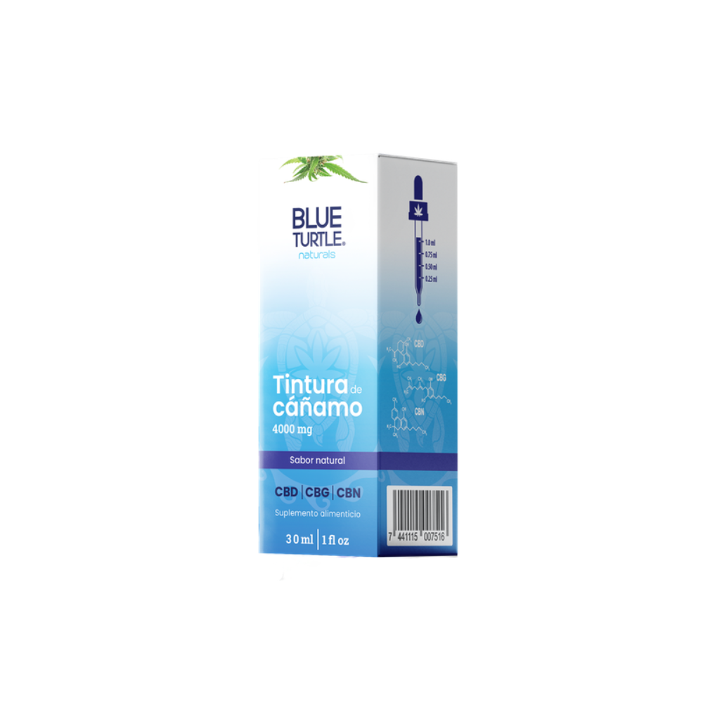 Tintura de Cáñamo de 4000 mg (30mL) en Sabor Natural de Blue Turtle Naturals. Nuestras tinturas de 4000 mg contienen 6,65 mg de CBD por gota. Para un total de 600 gotas.